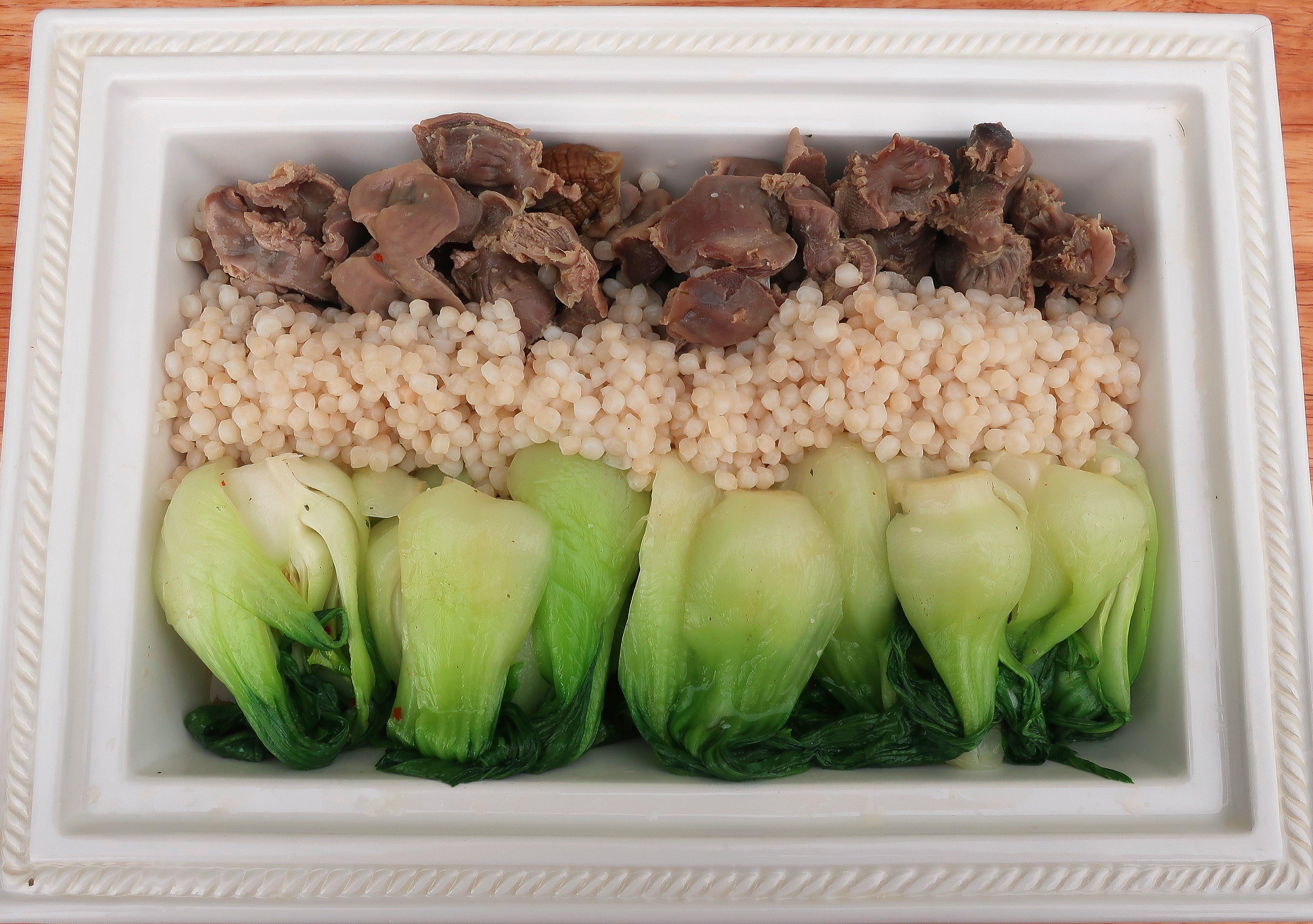 Pasta Pearls, Bok Choy, Mollejas And Chillies In GingerTamarind Broth ← Previous Next → add feshly cooked pasta pearls (Israeli couscous), add the broth and a few finely sliced chillies