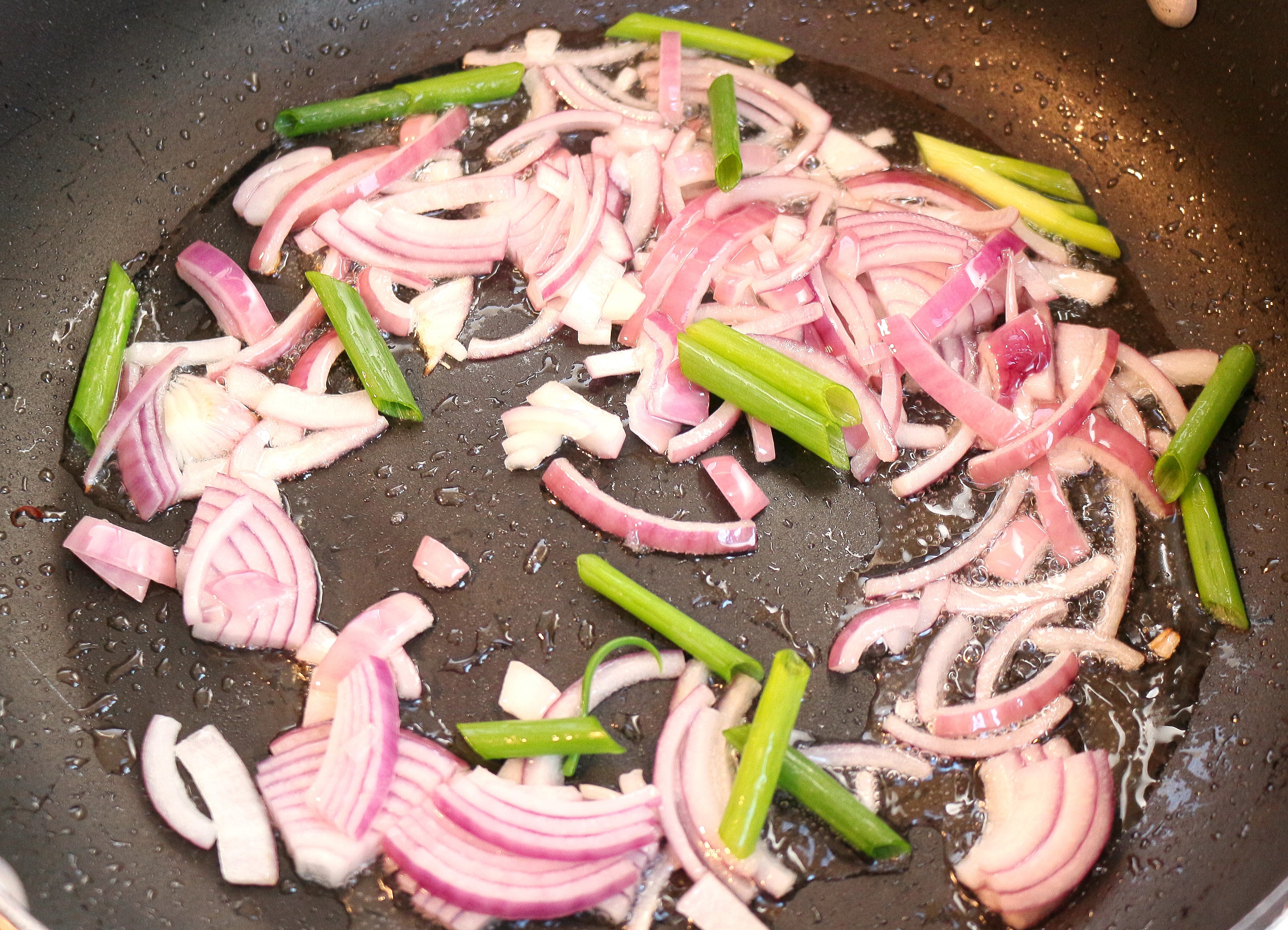 Cork Screw Pasta With Chicken And Vegetables In Curried Coconut Cream Next → saute julienne from 1ea large onion and 4 ea large scallions, cut into 2 inch stick, in 2 tblsp ghee