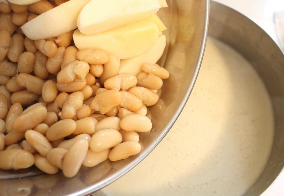 Cannellini And Potato Soup With Ham Hocks ← Previous Next → add 8 oz cooked cannellini beans, 10 oz cooked potato wedges and 2 tblsp sliced scallion, bring to a simmer, cook for 2 more minutes; check / adjust seasoning; serves 2 main course or 4 appetizer