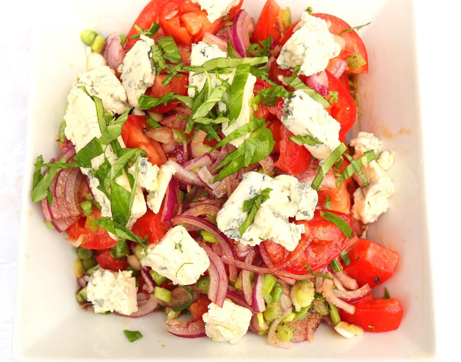 mix all, top with gorgonzola, anchovies, scallion and basil