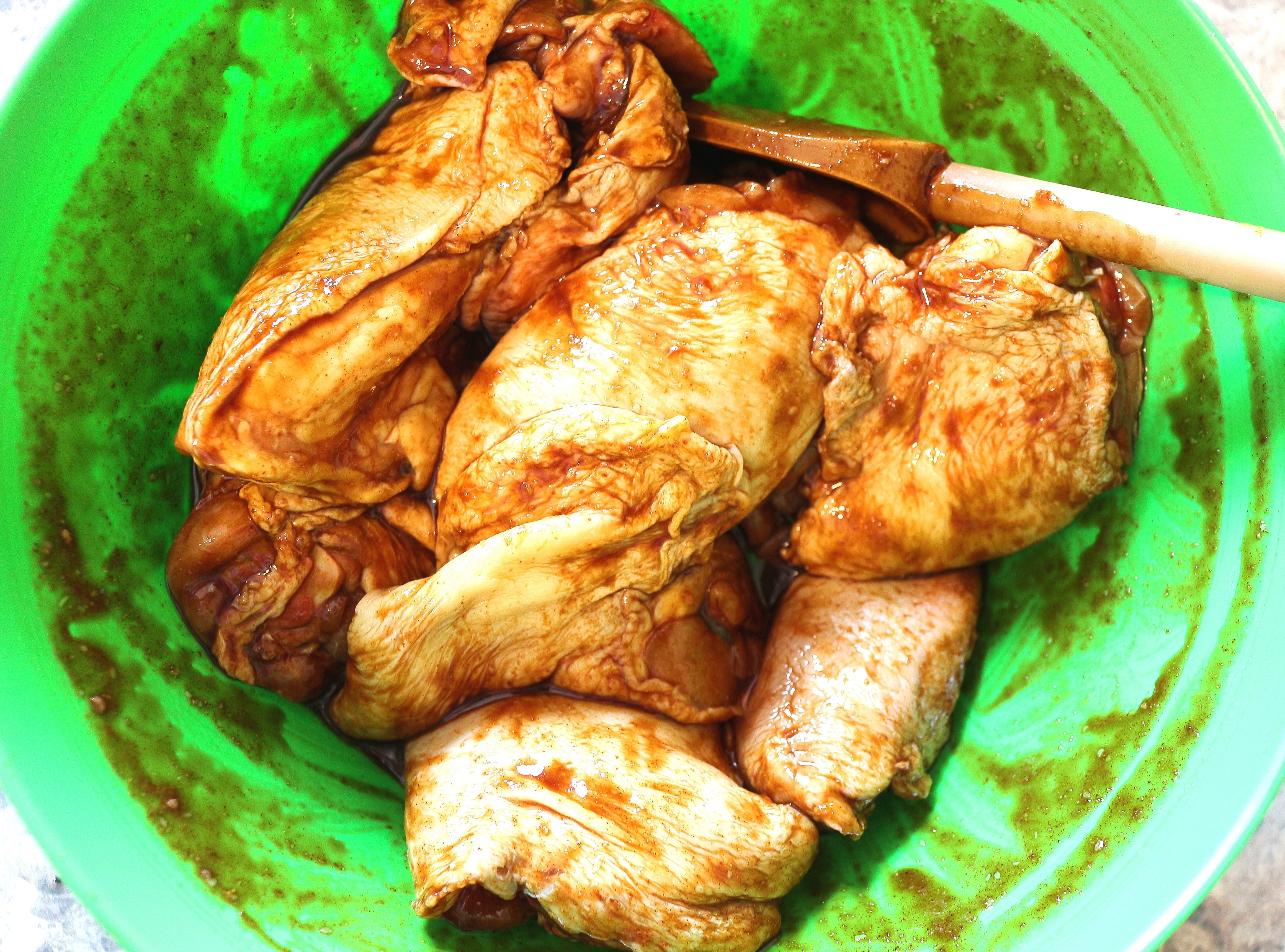 39 Roast Chicken Thighs With Grape Tomatoes In Yogurt Dressing ← Previous Next → marinade overnight 10 ea chicken thighs in 1/2 cup soy sauce, 1 tsp sriracha, 1 tblsp hoisin sauce and kosher salt to taste