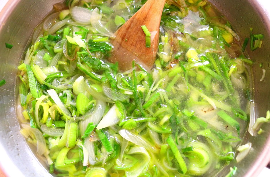 Perfection In A Bowl – Leftover Veggies Soup ← Previous Next → add 2 cups chicken stock, simmer until leek is soft but not mushy