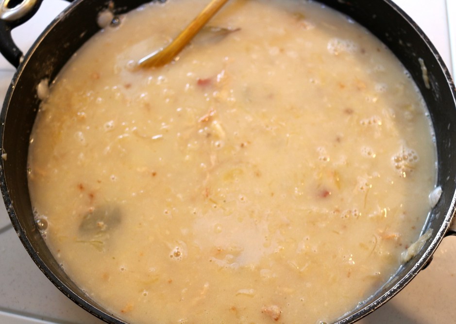 Sauerkraut Soup ← Previous Next → add 2 qt pork stock (or substitute with other good stock at hand, bring to a simmer, simmer for 20 minutes, if necessary, adjust texture of soup during this time