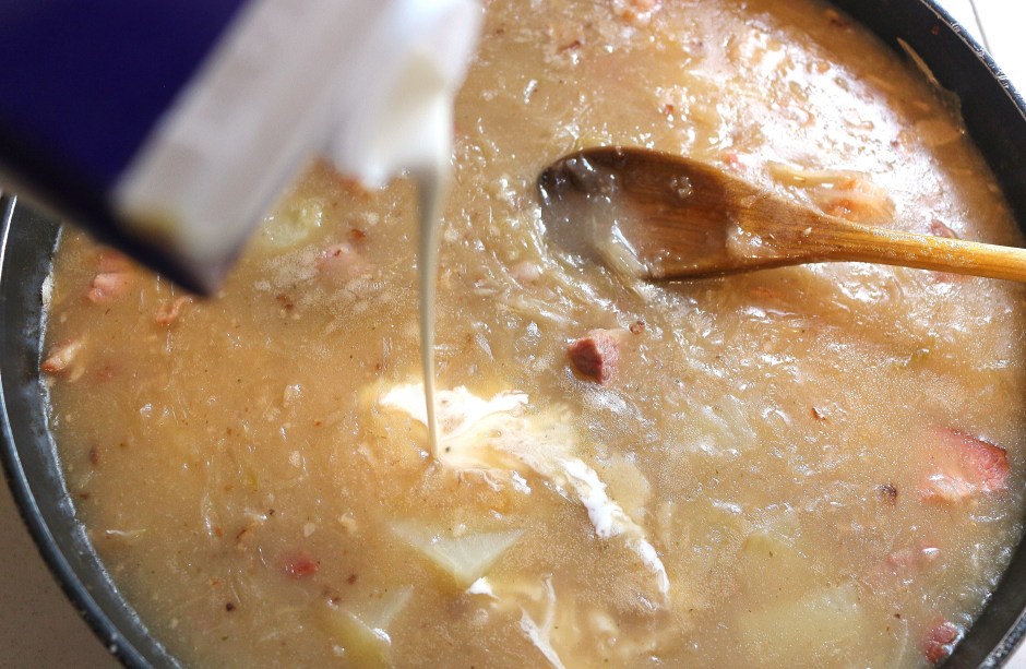 Sauerkraut Soup ← Previous Next → when the potatoes are almost done, add heavy cream to your preference; I personally like my sauerkraut soup very creamy, but this is a matter of personal preference, so follow your taste