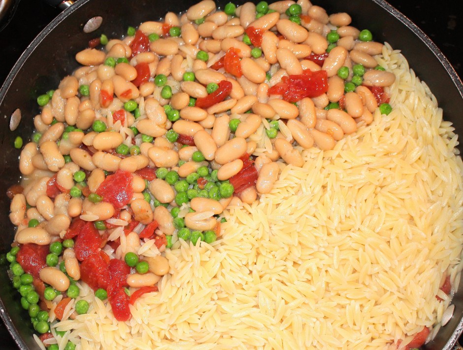 add 2 cups freshly cooked hot orzo