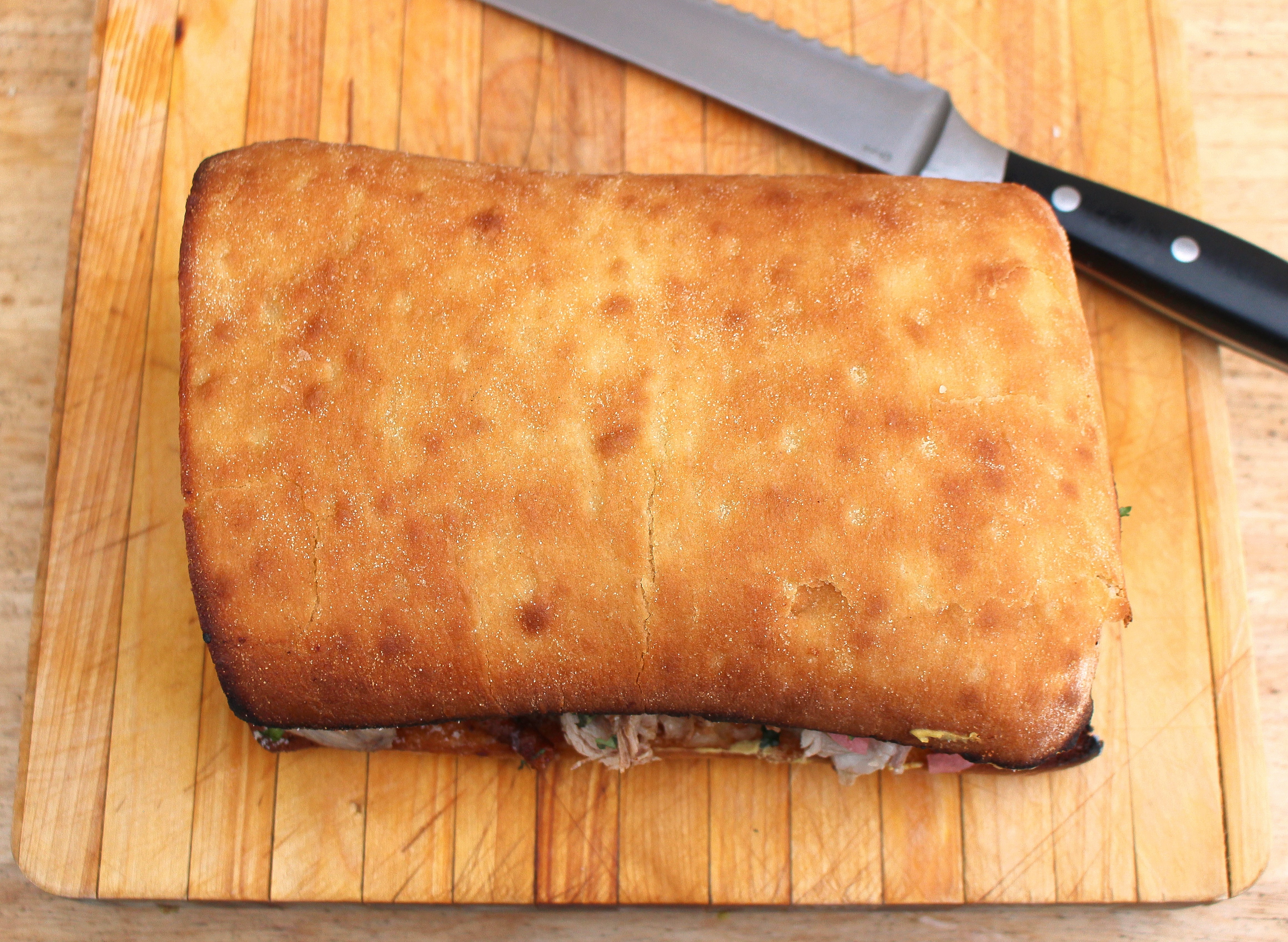 Toasted Focaccia Sandwich With Veal & Pickled Onions ← Previous Next → cut sandwich into pieces, serve with salted radishes
