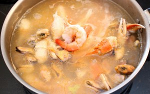 - add the seafood for 10 minutes, drain