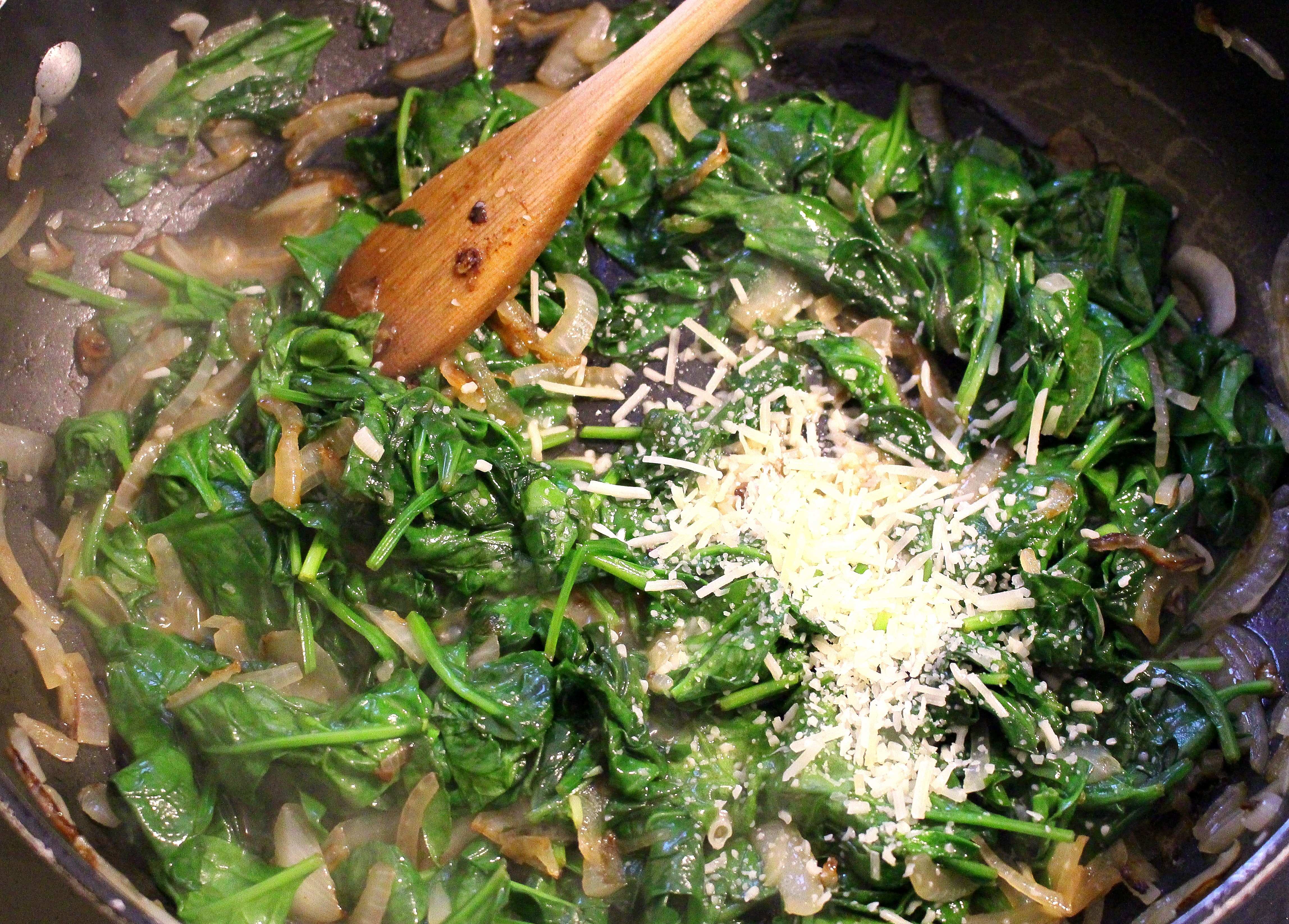 Best ! Poached Eggs ! Ever ! ← Previous Next → season with a pinch of grated nutmeg, 1 tblsp asiago cheese and kosher salt and cayenne pepper to taste, saute until the spinach starts to wilt, add to a warm serving dish