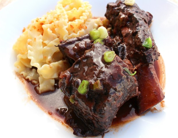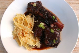 - Beef Ribs Braised With Blueberries And Merlot, Served With Mafaldine & Pangrattato