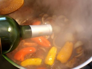 - add 2 quart of good quality merlot and 1 quart water, deglaze the pot