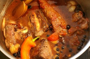 - remove the meat, set aside covered, degrease and strain the sauce, check / adjust seasoning, serve with pasta, rice, or mashed potatoes , serves 4