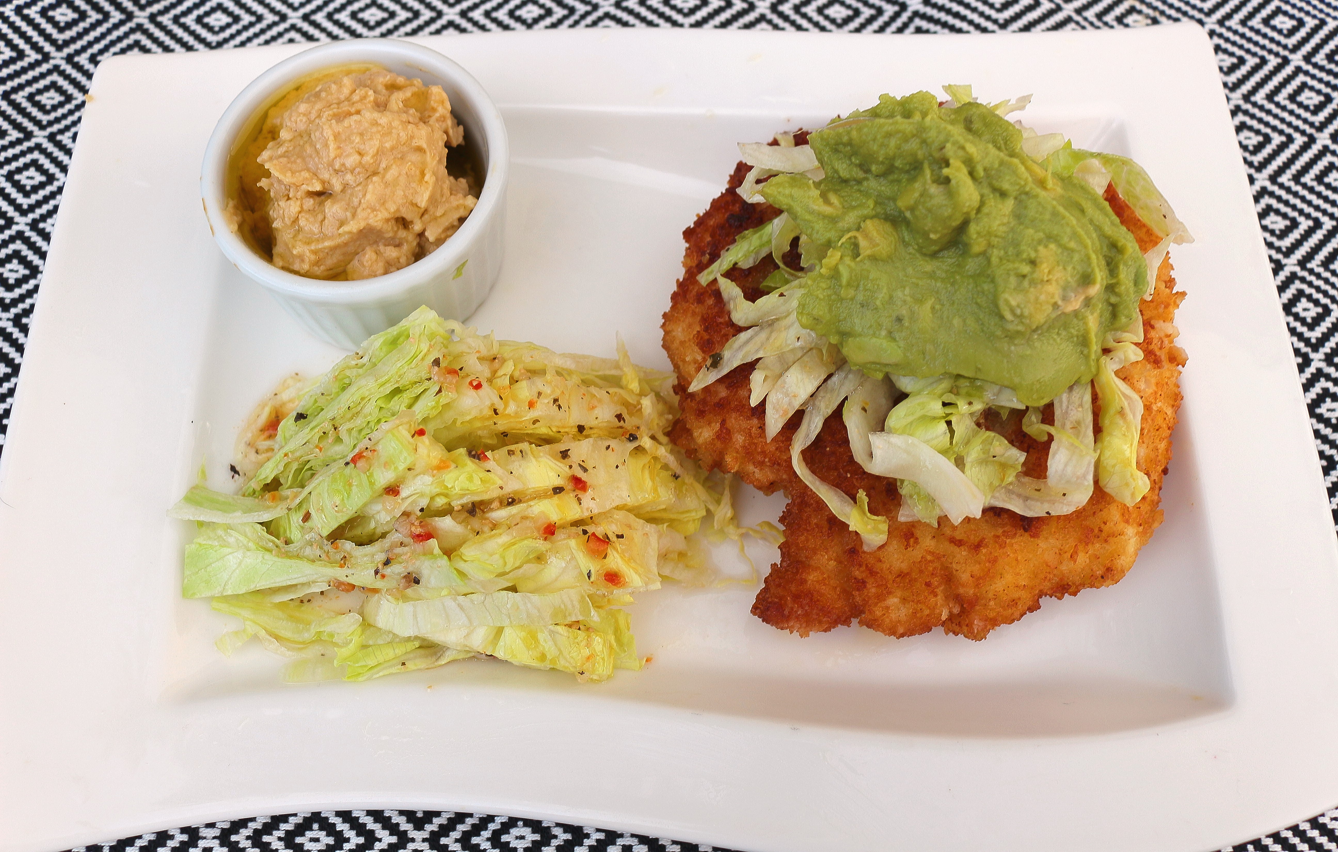 Breaded Chicken Sandwich With Guacamole. Sweet Chili Relish. Fried Egg and Lettuce. accompanied by Hummus and Iceberg ← Previous Next → top chicken with guacamole. top quac with chili, top chili with fried egg, add top half of bun