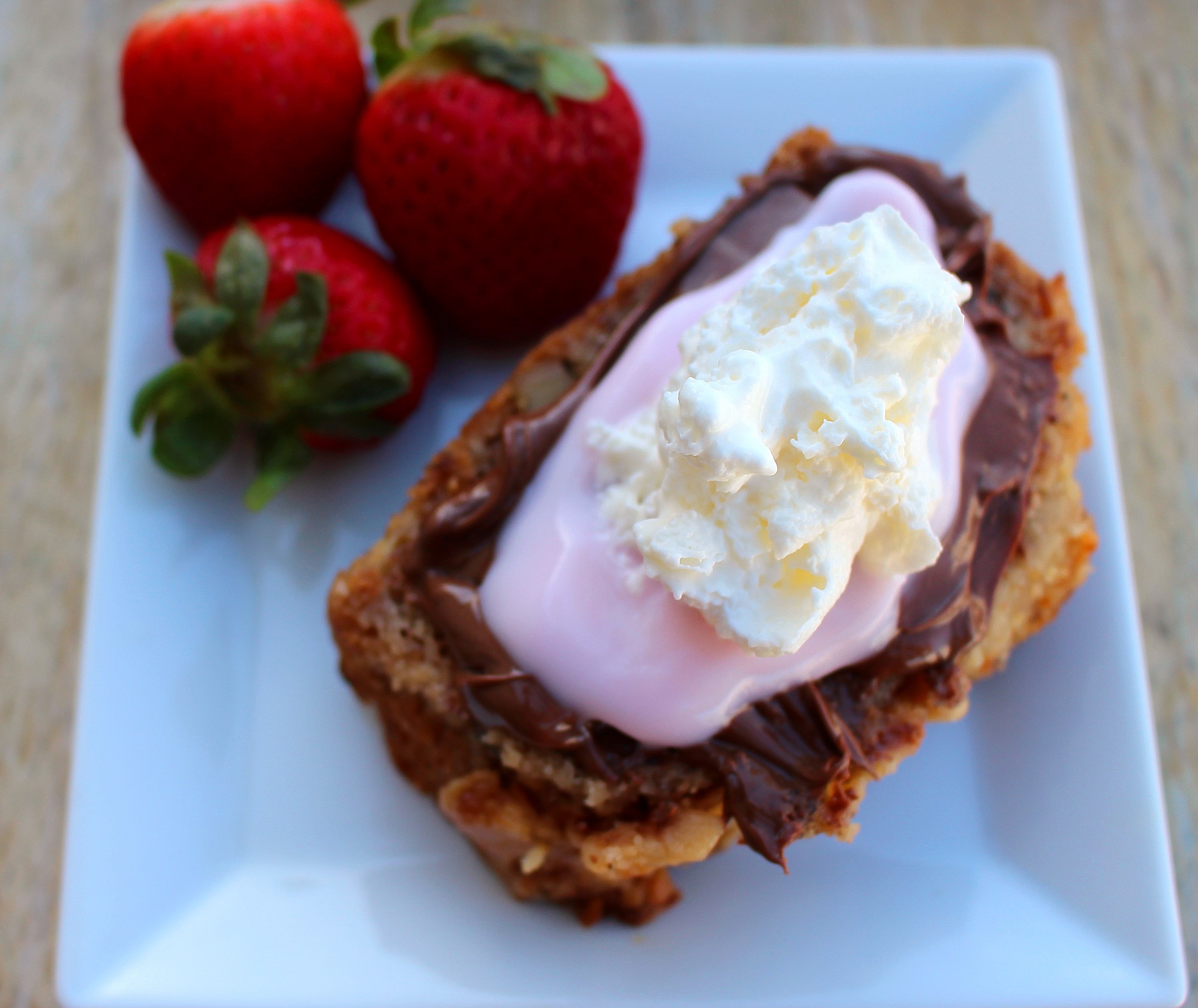 top the Nutella with strawberry yogurt, then top the yogurt with ready whip