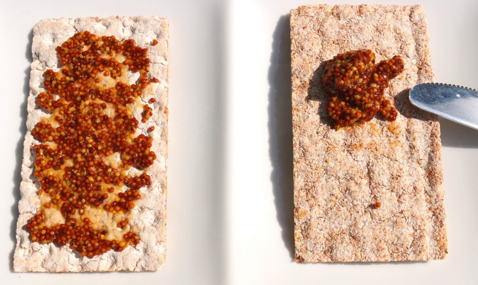 BREAKFAST OF CHAMPIONS # 71 – “AVOCADO KNÄCKEBRÖD” Next → add a good amount of mustard to ea slice of bread