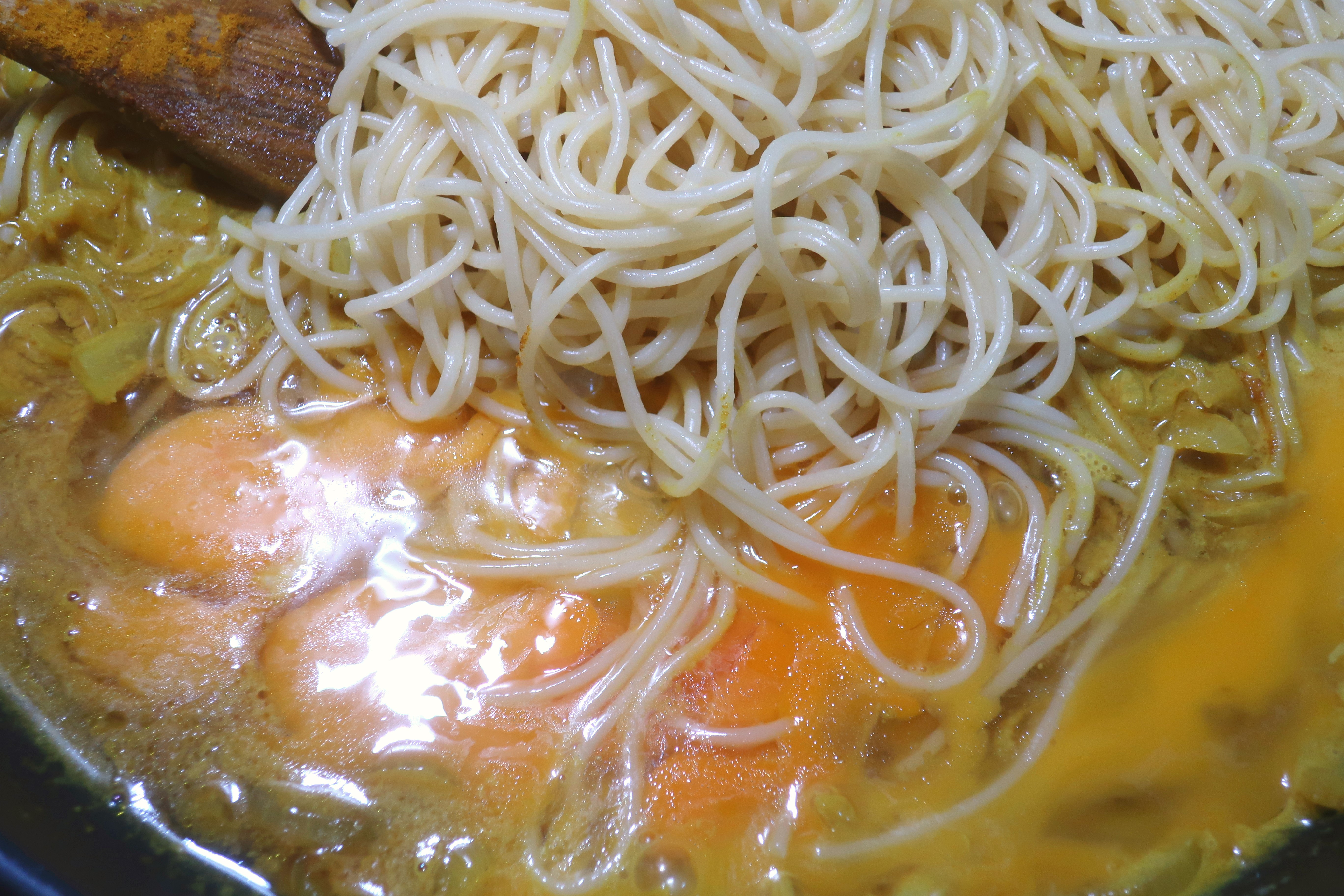 Curried Pasta With Cauliflower And Crisp Lettuce ← Previous Next → add the pasta and 3 whole eggs, stir and cook until the eggs start to set