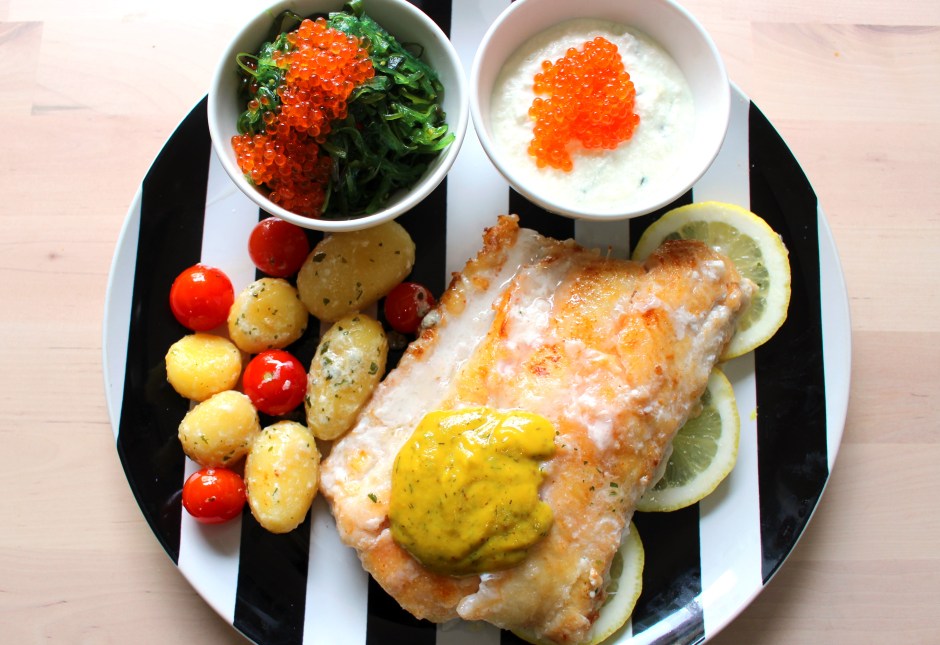 Northern Wolf Fish With Dill-Honey Sauce, Garlic Potatoes, Tsatsiki & Seaweed Salad with Trout-Caviar ← Previous Northern Wolf Fish With Dill-Mustard Sauce, Garlic Potatoes, Tsatsiki & Seaweed Salad with Trout-Caviar