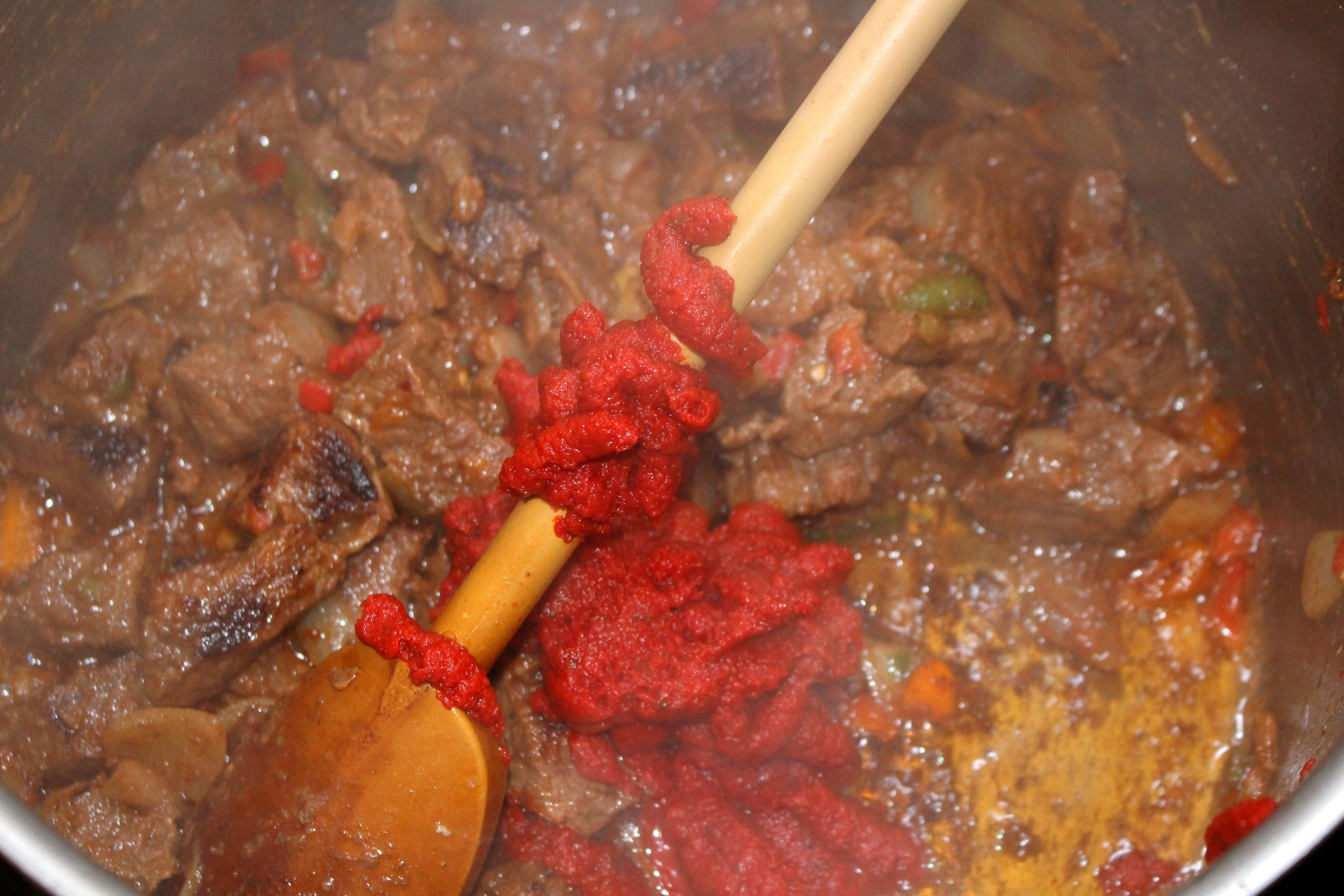 Beef Stew With Potatoes, Peppers And Tomatoes ← Previous Next → add the tomato paste, saute until starting to caramelize