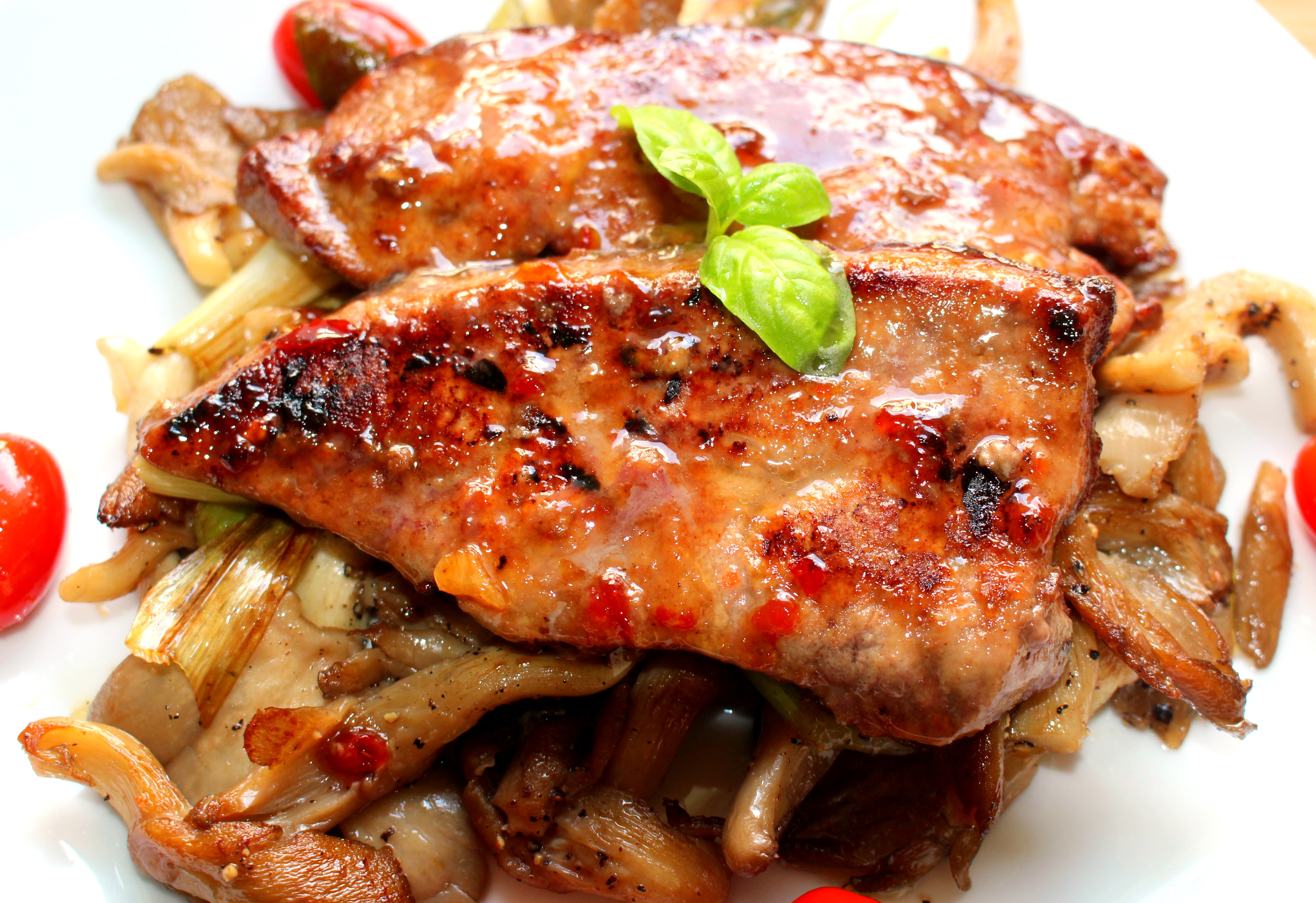 Sautéed Veal Liver with Thai Chili-Vinegar Sauce, Sautéed Oyster Mushrooms, Scallions and Grape- Tomatoes & Potato-Cucumber Salad ← Previous Next → Sautéed Veal Liver with Thai Chili-Vinegar Sauce, Sautéed Oyster Mushrooms, Scallions and Grape -Tomatoes & Potato-Cucumber Salad