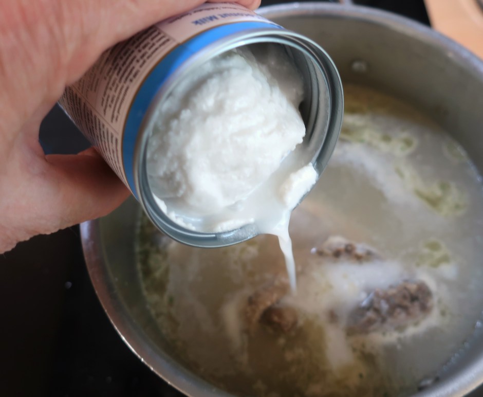 Chicken And Udon In Coconut/Chili Soup ← Previous Next → about halfway through the cooking process (20 to 30 minutes), add 1 ea can of coconut milk and 2 tblsp sweet Thai chili sauce to the soup