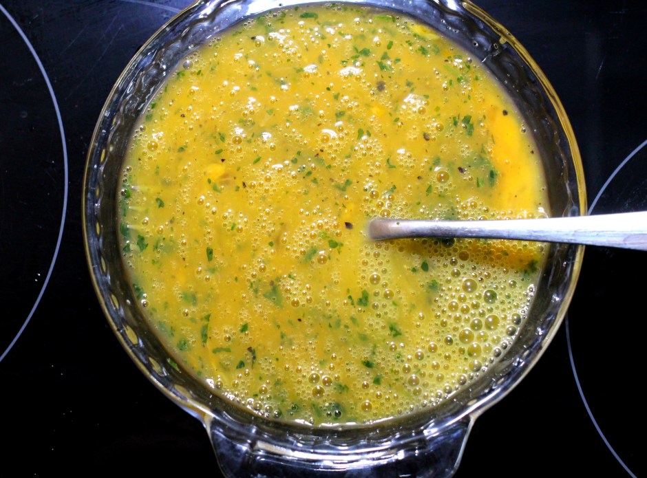 Breakfast of Champions # 75 – Schwäbisches Bauernfrühstück ( Swabian Farmers Breakfast ) ← Previous Next → whisk 4-5 ea fresh eggs (depending on size) with 1 tblsp finely sliced chives, season with kosher salt and fresh-ground black pepper to taste