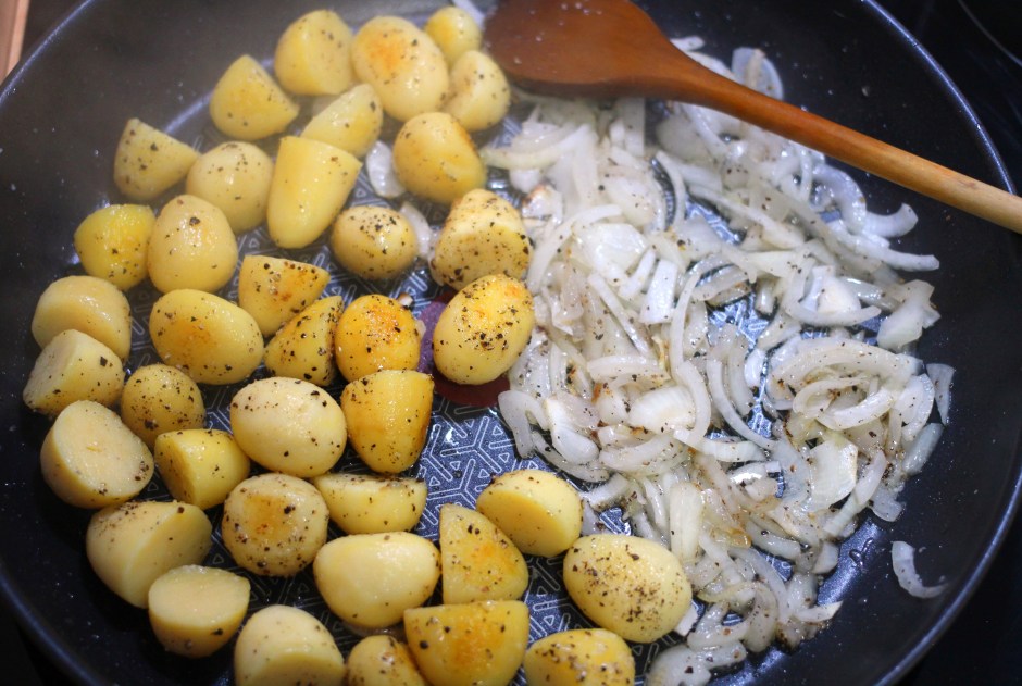 Breakfast of Champions # 75 – Schwäbisches Bauernfrühstück ( Swabian Farmers Breakfast ) ← Previous Next → to 1 tblsp EOV add 8 oz of small, cooked potatoesand 1 ea medium size sliced onion