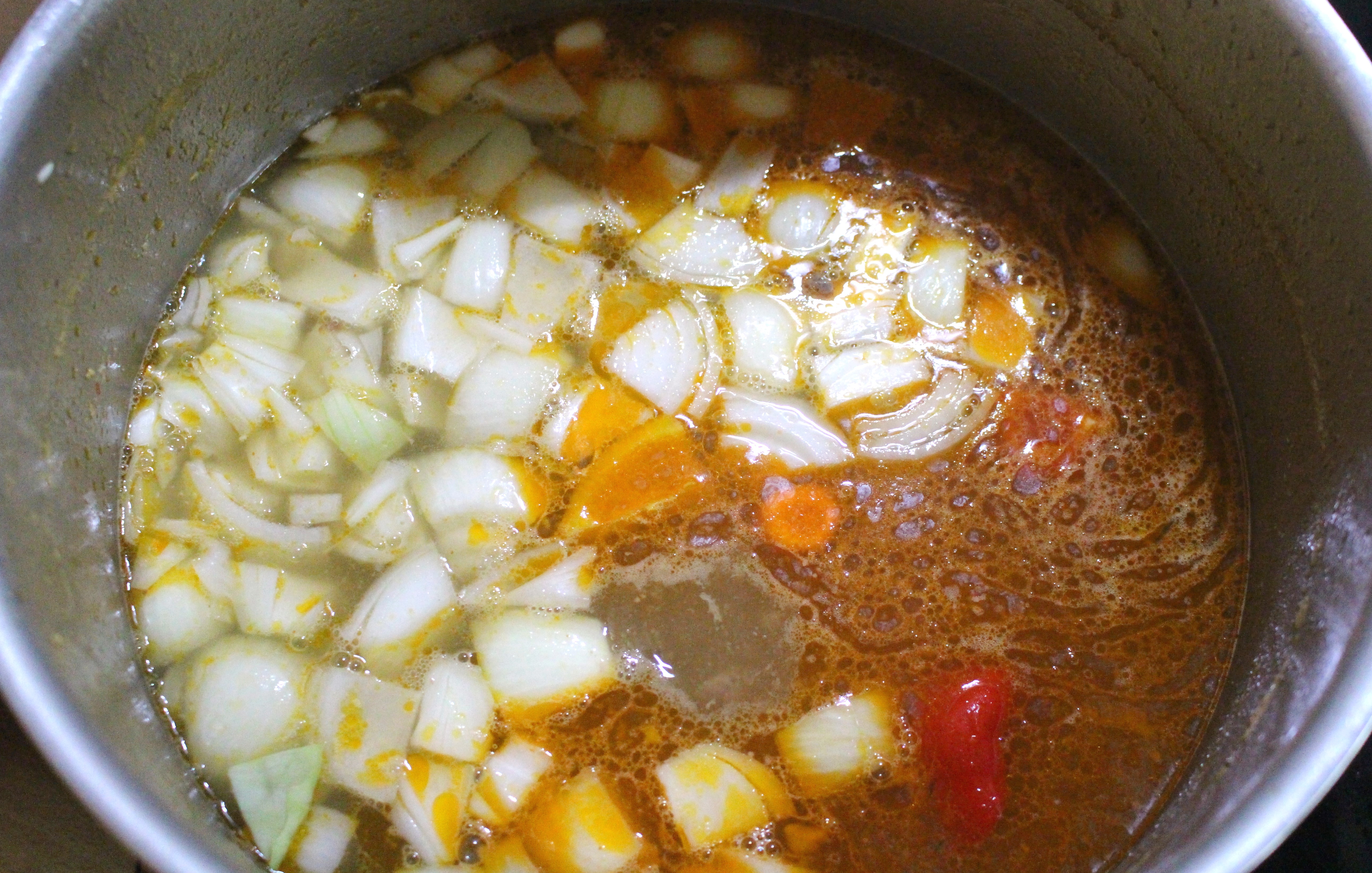 Beef & Pork Stew with Sausage, Potatoes, Spätzle and Veggies ← Previous Next → add the carrots and onions to the soup, simmer until the carrots are soft