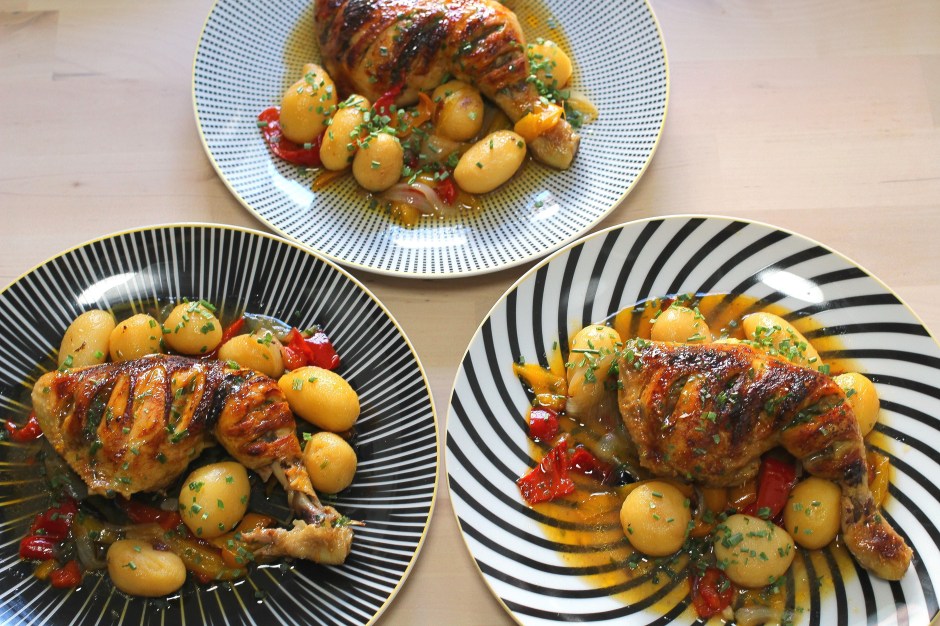 Запечённая курица с картофелем, луком и паприкой (Braised Chicken With Potatoes, Peppers And Onions) ← Previous Next → Запечённая курица с картофелем, луком и паприкой (Braised Chicken With Potatoes, Peppers And Onions)