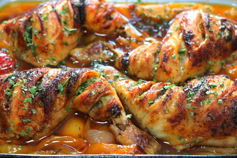 Запечённая курица с картофелем, луком и паприкой (Braised Chicken With Potatoes, Peppers And Onions) ← Previous Next → Запечённая курица с картофелем, луком и паприкой (Braised Chicken With Potatoes, Peppers And Onions)