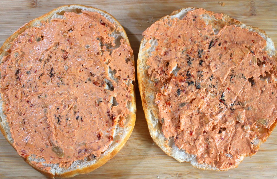 “The Ultimate Mushroom Sandwich” – Sauteed Rock Oyster Mushrooms With Grape-Tomatoes & Peppers, Goat Cheese Spread With Sun-Dried Tomatoes, And Fried Onions, Tzatziki, Cilantro, And Lettuce On Greek Bread ← Previous Next → ready to eat 🙂