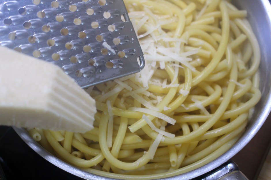 Around The World In 20 Minutes – Pork Neck Steak, Chilies, Onions And Bucatini With Herbs And Parmigiano Reggiano ← Previous Next → drain the bucatini, mix with 2 tblsp EVO and 2 tblsp grated parmigiano reggiano, plate on a deep pasta plate