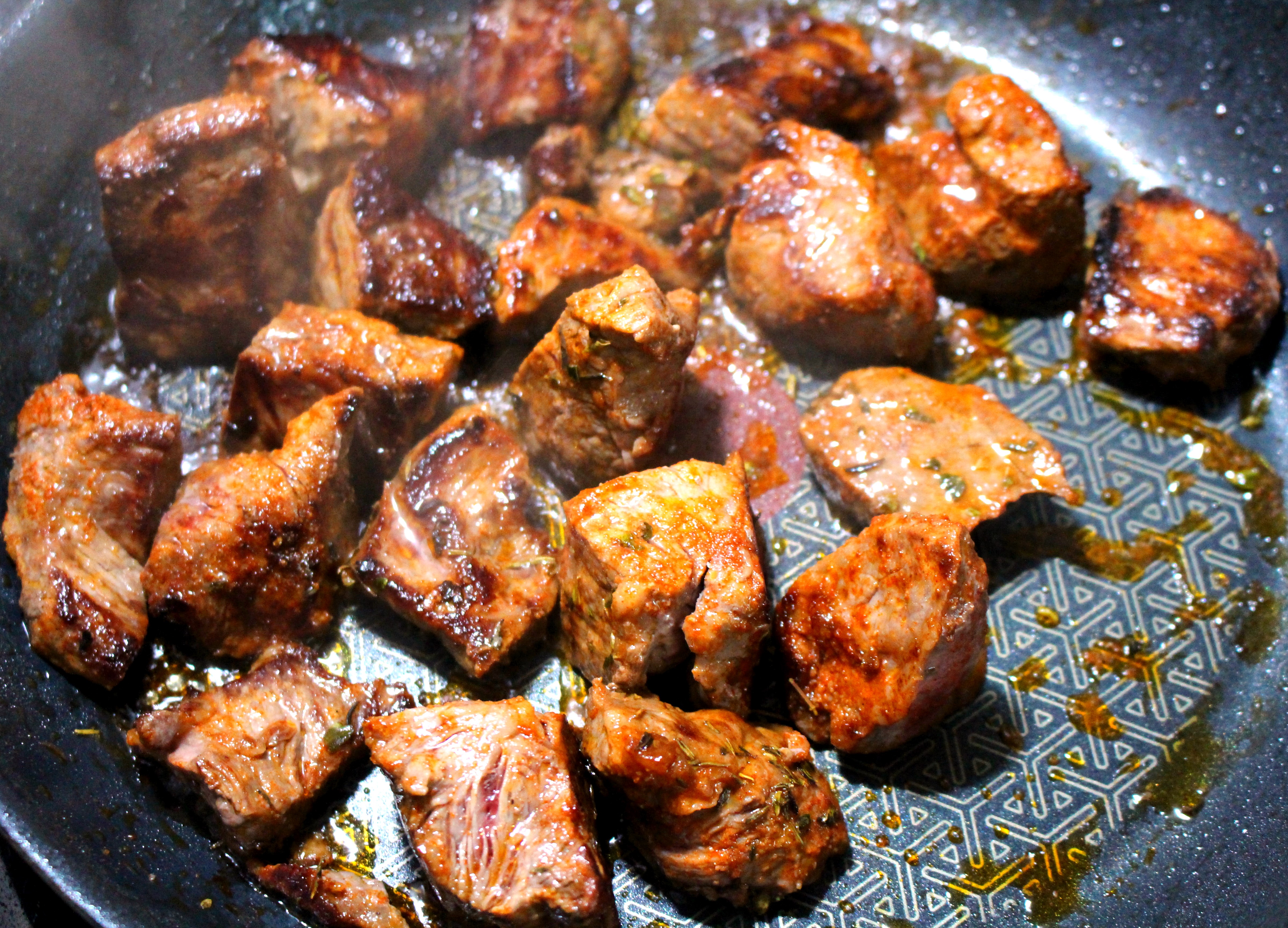 Sautéed Cubed Striploin Steak, With Potatoes, Carrots & Onions ← Previous Next → season the beef with kosher salt, cayenne pepper and granulated garlic to taste