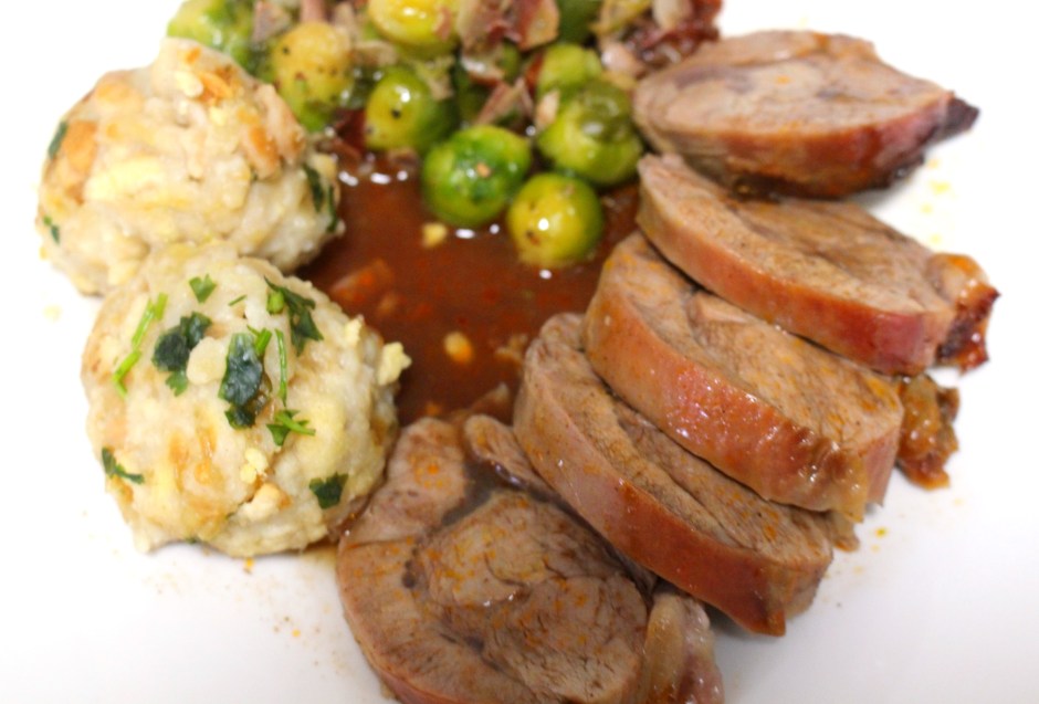 Kalbs Haxe, Semmelknödel, Und Rosenkohl Mit Speck… (Whole-Roast Veal Shank, Brussels Sprouts And Bread Dumplings) ← Previous Next → Kalbs Haxe, Semmelknödel, Und Rosenkohl Mit Speck… (Whole-Roast Veal Shank, Brussels Sprouts And Bread Dumplings)
