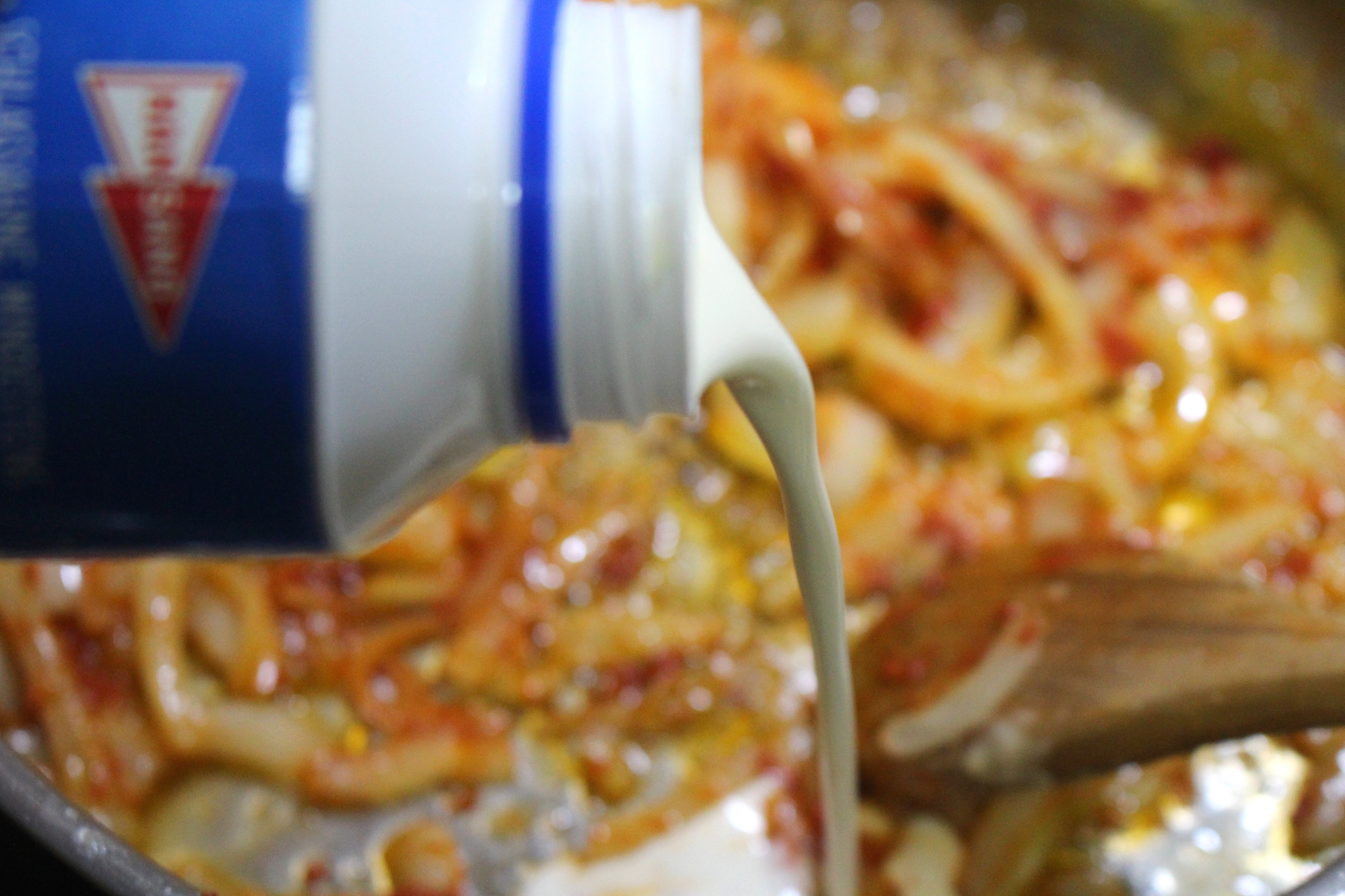 Cannellini Beans & Ravioli, Gratinated In Chilli/Tomato Cream ← Previous Next → add 1 1/2 cup heavy cream, kosher salt and sriracha sauce to taste