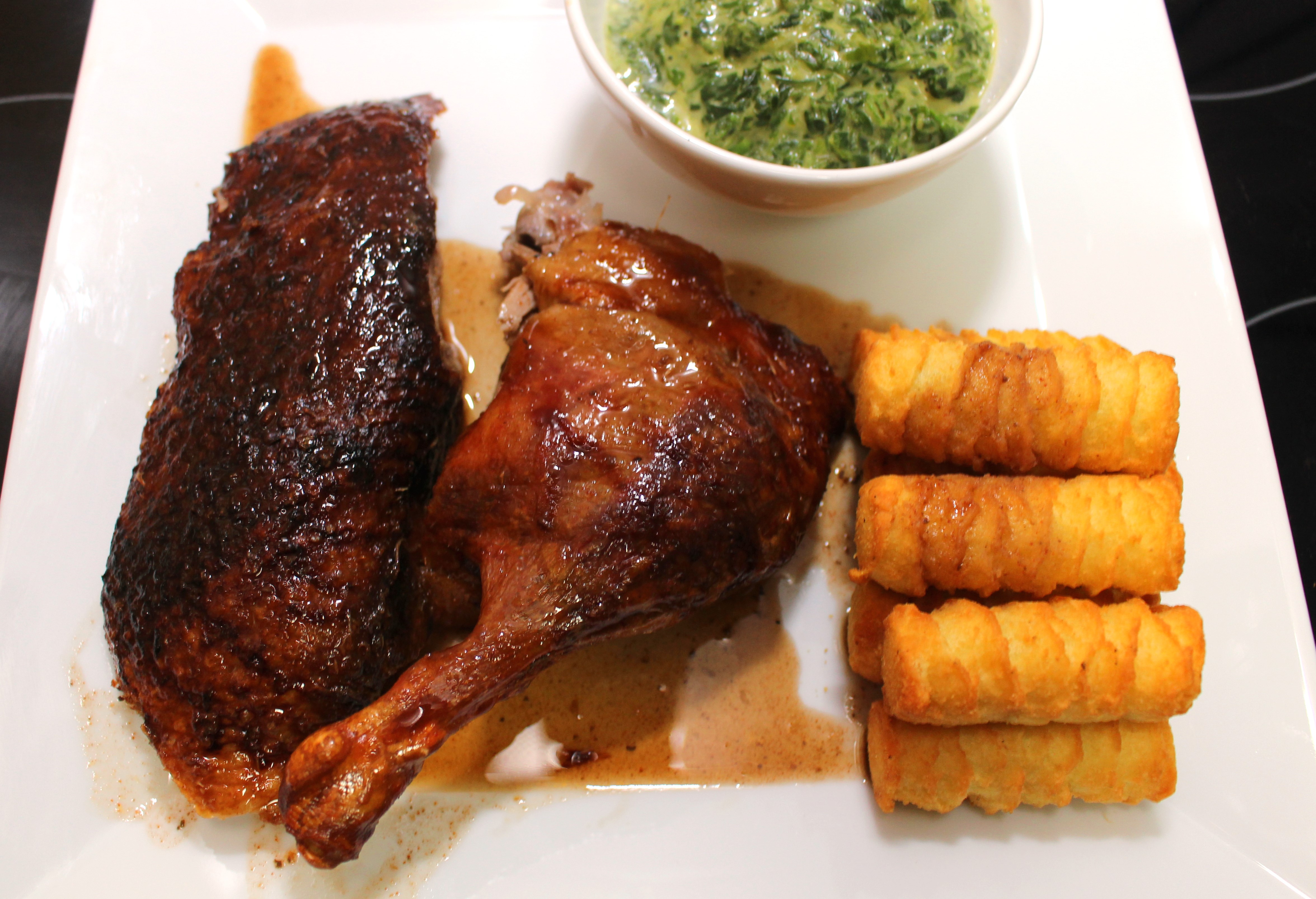 Easy Does It # 38 – Slow Roast Crispy Duck, Creamed Spinach, Pommes Croquettes & Red Wine Jus ← Previous Next → Easy Does It # 38 – Slow Roast Crispy Duck, Creamed Spinach, Pommes Croquettes & Red Wine Jus