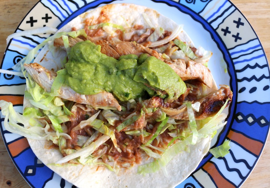 Capon Taco ← Previous Next → top with 2 tblsp guacamole and1 tsp chopped jalapenos; 1 tblsp of sour cream (optional)