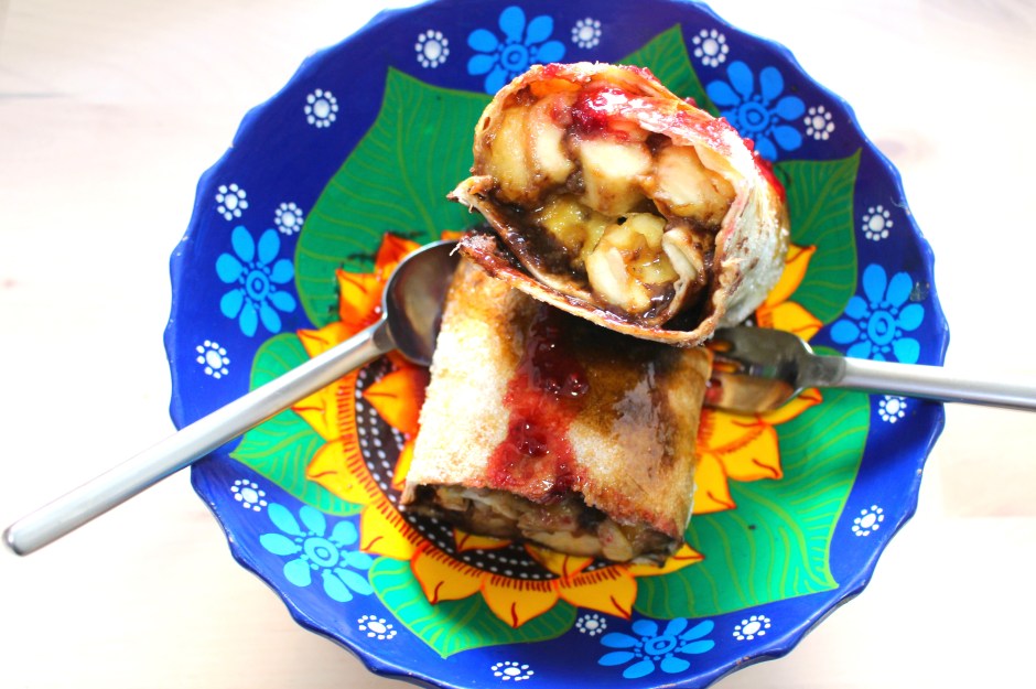 Caramelized Banana & Chocolate Burrito With Strawberry Preserve