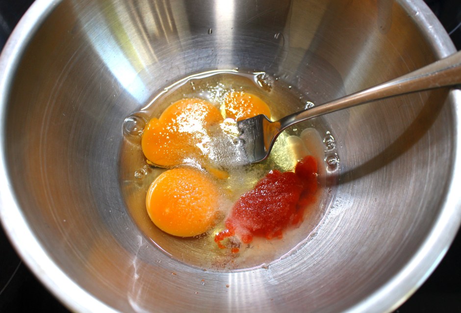Breaded Chicken Breast Cutlet (Paniertes Hühner Schnitzel) Next → whisk 3 ea whole eggs with sriracha, granulated garlic and kosher salt to taste