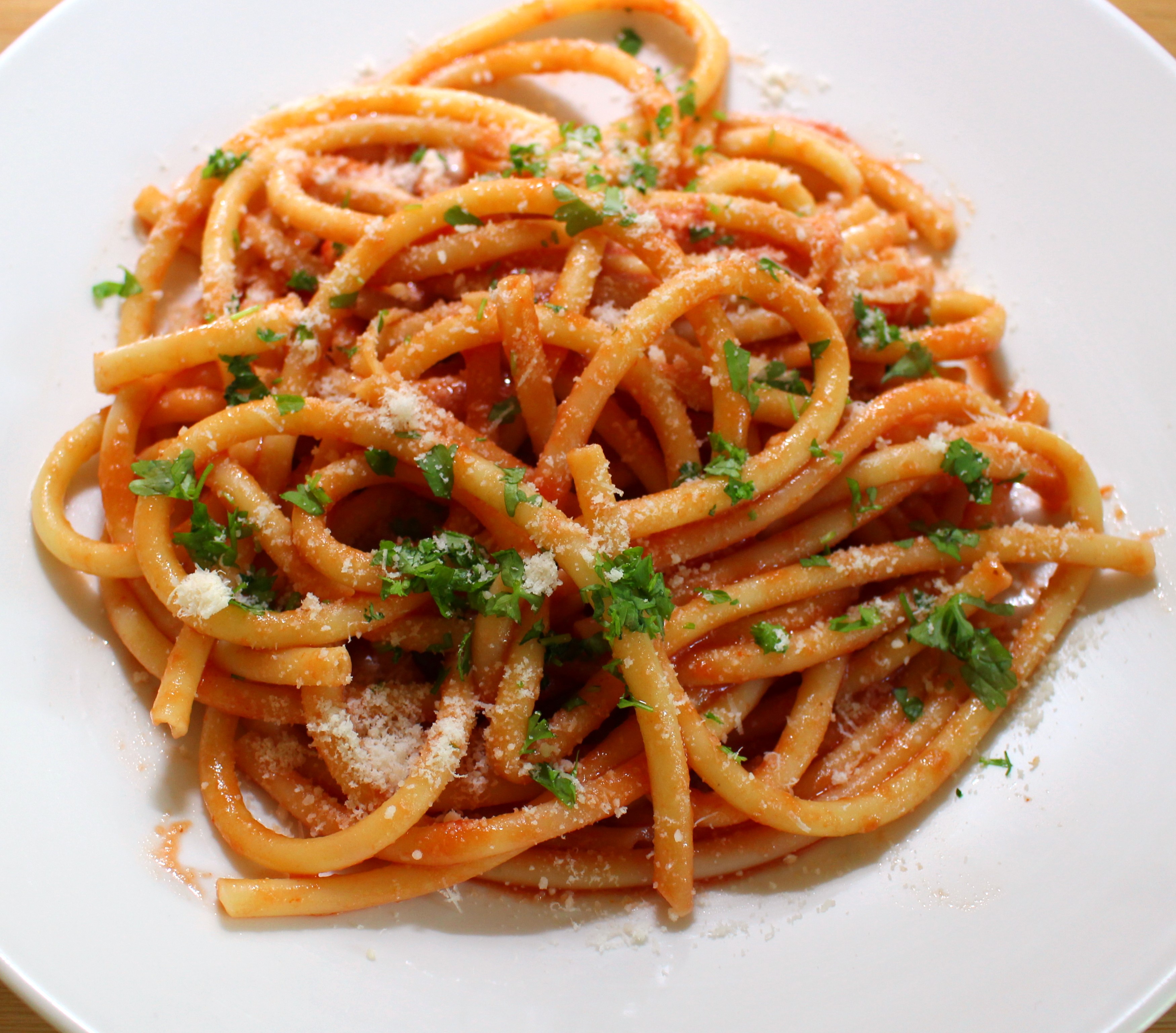 Bucatini With No-Cook Tomato Sauce