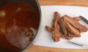 - reduce until slightly thickened, set aside