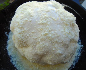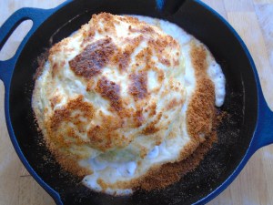 - mix 3 tblsp grated asiago cheese, 2 small eggs, 1 tblsp finely sliced scallion, kosher salt and cayenne pepper to taste