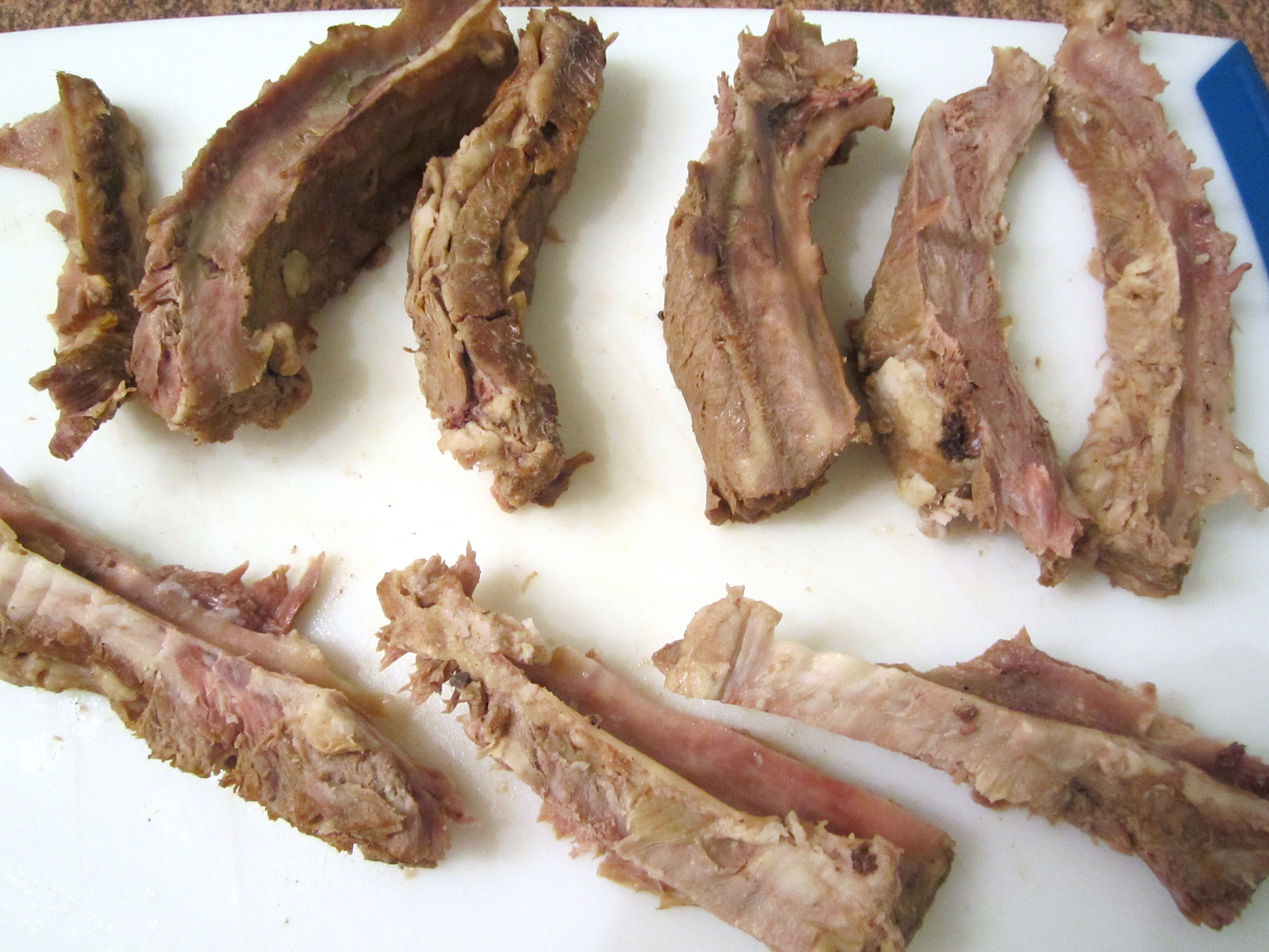 - in a large pot, add the ribs, 4 qt water, 1 lg quartered peeled onion, 4 ea med carrots, cut into lg pieces, kosher salt and grd black pepper to taste, cook until ribs are soft but NOT falling apart, remove ribs; you should have 1 qt stock remaining; meanwhile, cook 8 oz pasta of your choice (here, I used linguini)