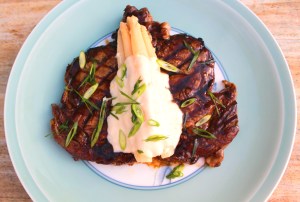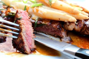 See the pic of the close-up of the meat – well done, but VERY juicy and tender 🙂