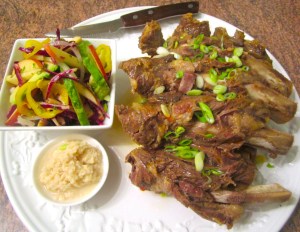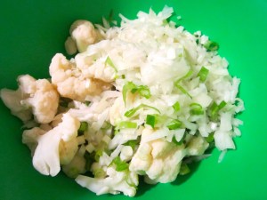 - cook a whole med size chicken with 4 scallion stalks, 1 large peeled onion, kosher salt o taste and one tsp dried oregano in 2 qt water until chicken is tender, remove chicken and set aside; there should be 1 qt stock remaining – check/adjust seasoning