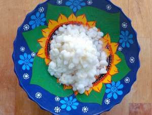 “Pozole. Variants: pozolé, pozolli, pasole), which means “hominy”, is a traditional soup or stew from Mexico, which once had ritual significance. It is made from hominy, with meat (typically pork), and can be seasoned and garnished with shredded cabbage, chile peppers, onion, garlic, radishes, avocado, salsa and/or limes.