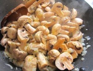 - add 6 oz sliced button mushrooms, saute until lightly browned
