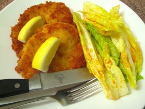 I had been thinking of and lusting for chicken cordon bleu the whole day long, so on my way home I stopped at the store to buy the ingredients.