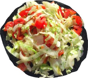 Called шницел (shnitsel), it is made from ground veal, formed as a thin patty, seasoned with salt and black pepper, then breaded and fried. The dish usually is served with a choice of mashed or roasted potatoes, French fries, or simply a tomato salad. It is common at truck stops, and it is usually ordered à la carte, coming with a lemon wedge, but one can also find it in the frozen sections in supermarkets or premade and ready to cook.