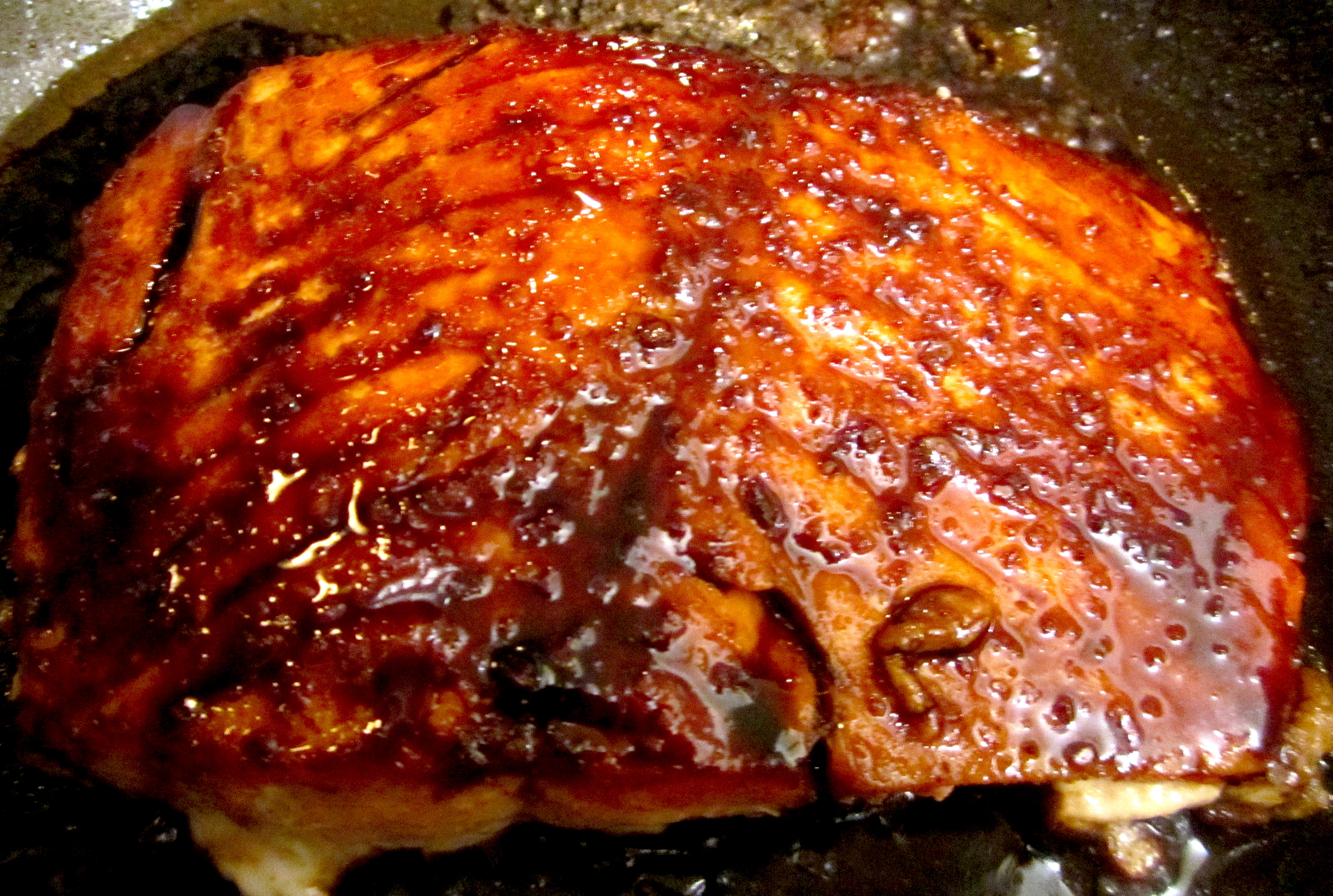 Brush bottom side with teriyaki sauce, turn and brush skin side.