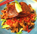 For yesterday’s dinner, I added teriyaki glazed salmon, which