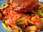 ” Teriayki Salmon & Garlic Noodles With Straw Mushrooms In Oyster Sauce “